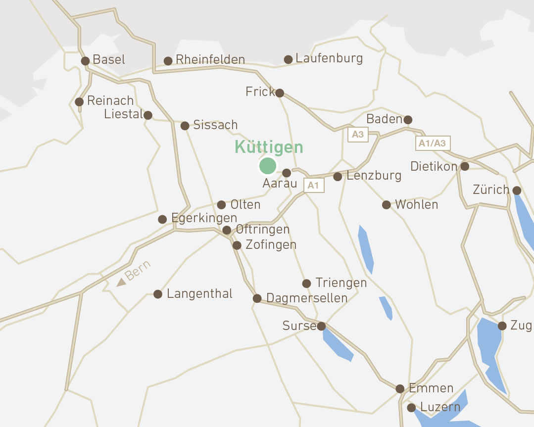 Küttigen ist ideal an den öffentlichen und privaten Verkehr